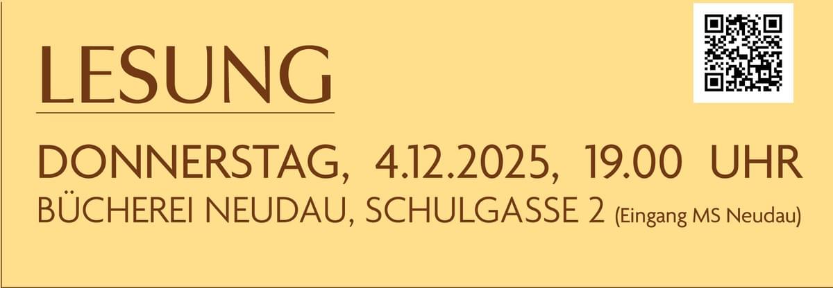 04.12.2025 Bücherei Neudau, Schulgasse 2, 8292 Neudau, 19:00 Uhr06.03.2026 Bücherei Pöllau, 8225 Pöllau, 19:00 Uhr